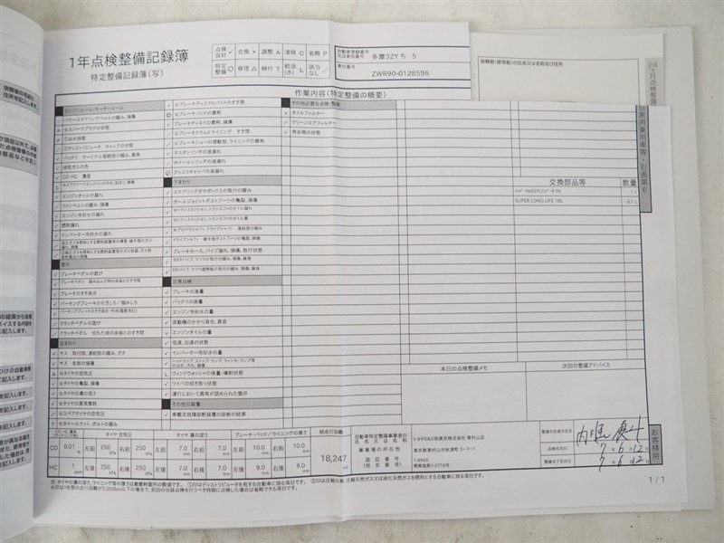 メンテナンスノート付きです。過去の整備記録を確認したり、お車の状況にあった整備をすることに役立ちます。
