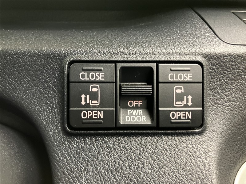 電動スライドドアのスイッチ付です。車内からもスイッチひとつで楽にドアの開閉が可能です。電動なので開閉時に力を使う必要がなく、半ドアになることもありません!