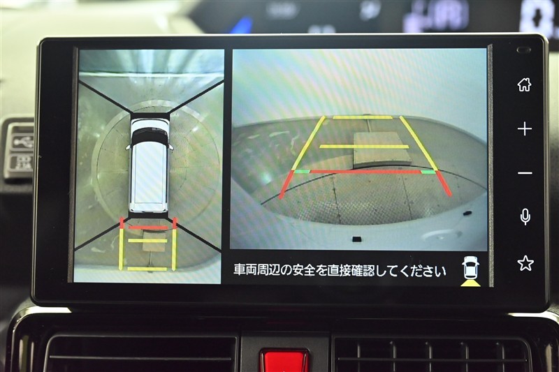 パノラミックビューモニター付きです。車両を上から見たような映像をディスプレイオーディオ画面に表示。運転席からの目視だけでは見にくい、車両周辺の状況をリアルタイムでしっかり確認できます。