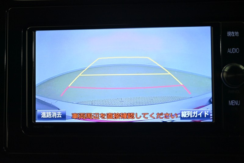 バックガイドモニター(バックモニター)付き。車両後方の映像をナビ画面に表示し、駐車などの後退操作をサポートします。