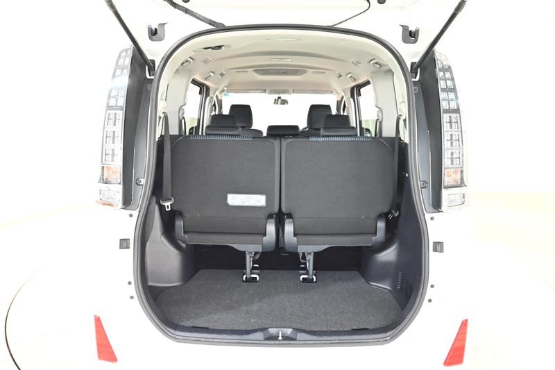 3列目シートは跳ね上げ式で折りたたみ可能です。キャンプ用品など大きな荷物もばっちり収納可能です!
