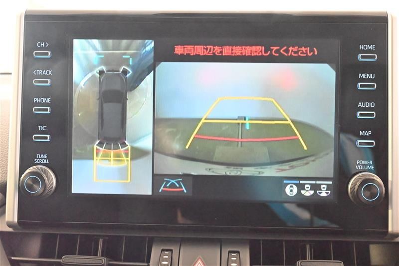 パノラミックビューモニター付きです。車両を上から見たような映像をディスプレイオーディオ画面に表示。運転席からの目視だけでは見にくい、車両周辺の状況をリアルタイムでしっかり確認できます。