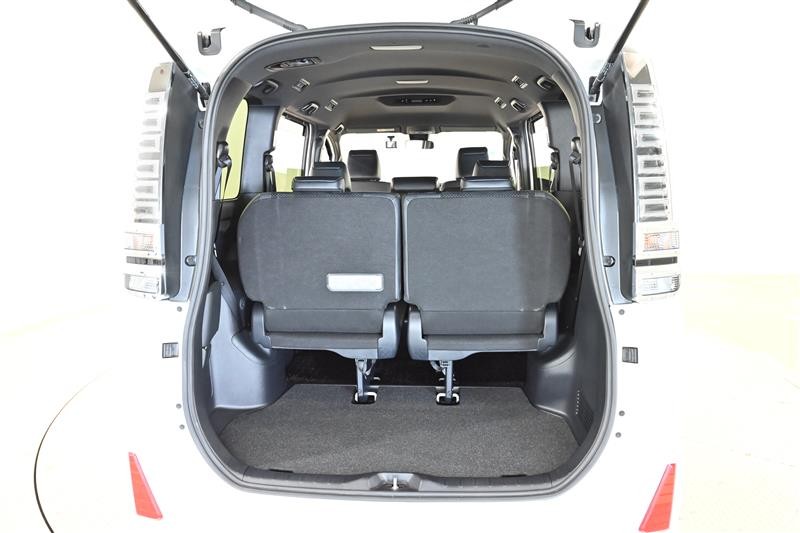 3列目シートは跳ね上げ式で折りたたみ可能です。キャンプ用品など大きな荷物もばっちり収納可能です!