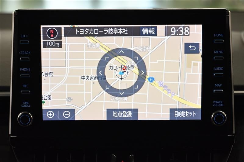 バックガイドモニター(バックモニター)付き。車両後方の映像をナビ画面に表示し、駐車などの後退操作をサポートします。