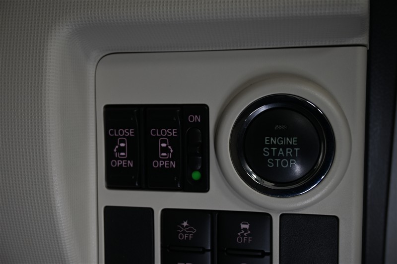 両側パワースライドドア付で狭いスペースでの乗降りもラクラクです。キーがポケットやバックの中でもワンプッシュでエンジンスタートでき便利です。