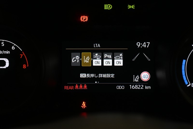 レーダークルーズコントロール装備で高速道路での長距離移動にあると便利です。LTA(レーントレーシングアシスト)搭載!うっかり車線をはみ出しそうになった時ハンドルの操作をアシストします。