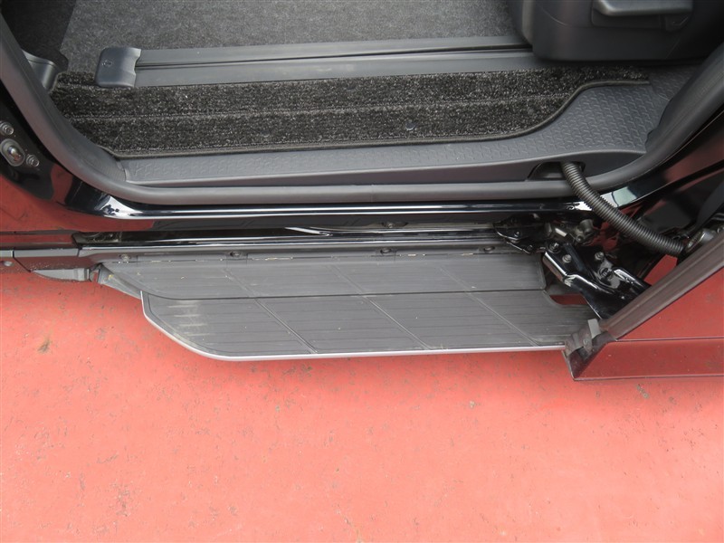 ユニバーサルステップがついております。ドアを開けるとスライドして出てきます。お子様や足が不自由な方にお勧めです。
