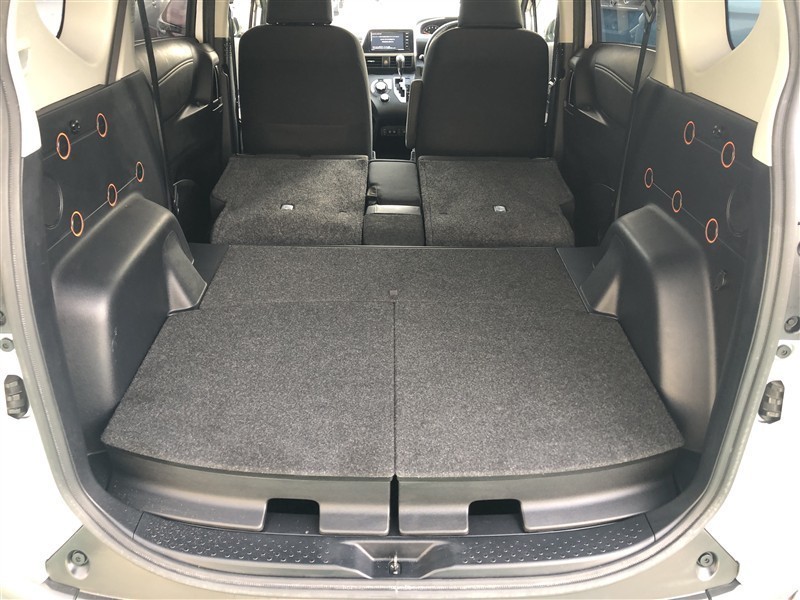 ラゲッジスペースも広く、とっても便利です。6:4分割可倒式リアシートを倒せば更に広い空間を確保、長い・大きい荷物も収納OK!買い物にレジャーに大活躍です♪