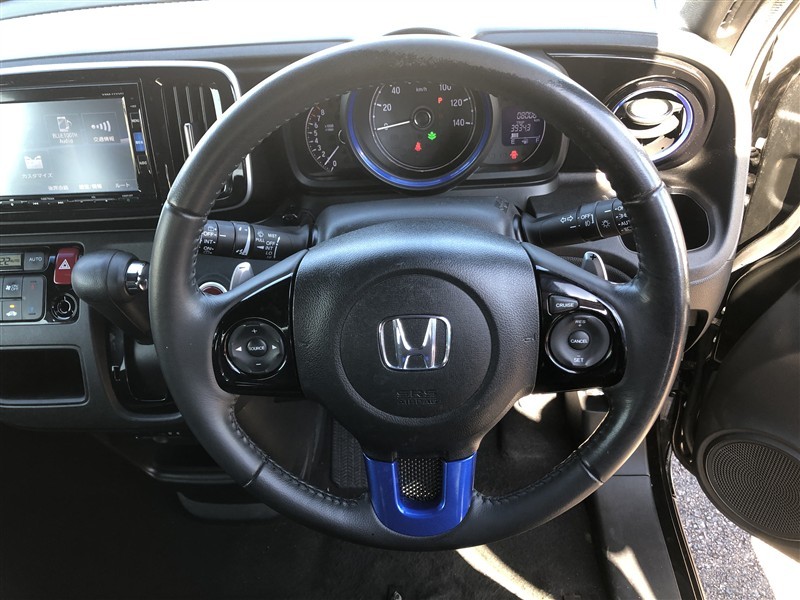 最近はホーンを鳴らすだけでなく、「オーディオ」操作や「メーター」表示切替などができるスイッチが付いてます。エアバッグも収納されてます。