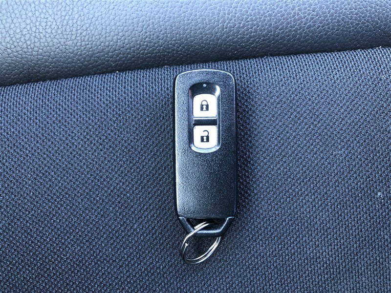 スマートキーです。カバンやポケットにカギを入れて持っているだけで、ボタン1つでドアロックを開閉できます。スマートキーを持って、ブレーキを踏んでスイッチONでエンジン始動もできます。