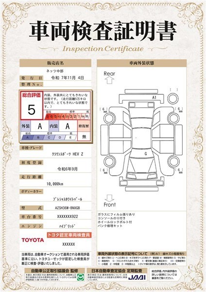 ※ 「修復歴あり」の場合、修復部位の詳細につきましては、販売店へお問い合わせください。