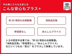 トヨタ認定中古車では、「約60項目の点検整備」「消耗品交換」「修復歴無し」「あんしんプライス」などいくつもの“安心”をプラスして納車しています。