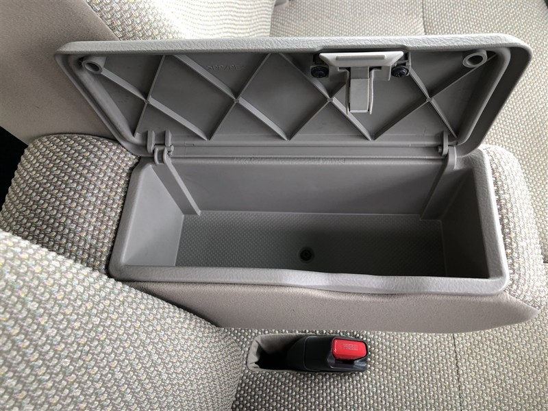 運転席と助手席の間には、ひじ掛けがついてます。収納ボックスも兼ねているので、小物も収納でき車内をスッキリと片付けられます。