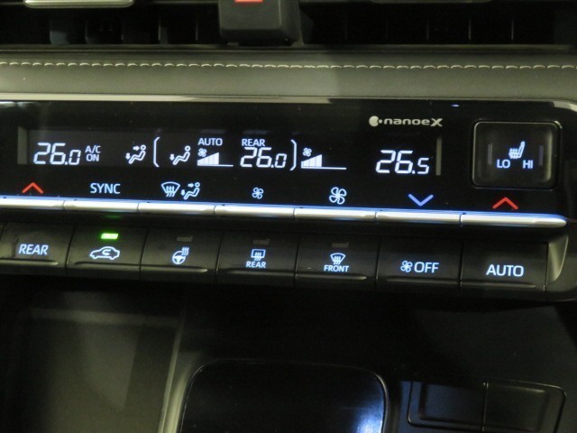 運転席、助手席別々に温度設定ができるデュアルエアコン装備です。男性が暑いと感じても、女性は寒いと感じる、そんな時の車内温度を別々に調節できるので、ストレスなくドライブをお楽しみいただけます。