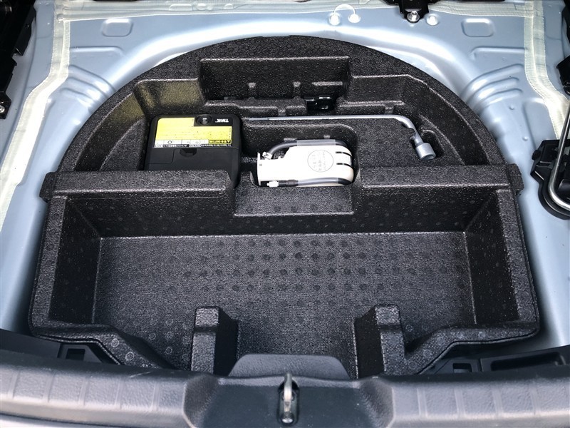 もしパンクをしてしまったら、この溶剤をエア注入口より入れて応急処置をしてください。重たいスペアタイヤを積んで走るより燃費の向上になるので、パンク修理キット搭載の車が増えているんです。