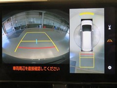 車の全周囲の画像が表示されます。運転席から見づらい個所なども、上空から見たような映像で確認できます。映像のきりかえも出来、後方確認だけでなく大変便利な機能です。