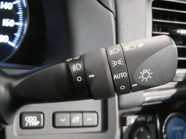 ライトスイッチです。「AUTO」にすると外の明るさに応じてスモールライト・ヘッドライトが自動でON・OFFします。夕暮れ時や屋内駐車場、トンネルなどに便利です。フォグランプもON・OFFできます。