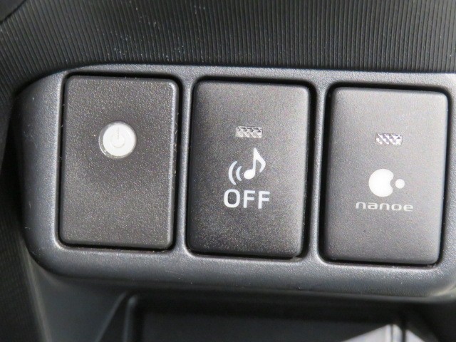 ハイブリッド車や電気自動車には「車両接近通報装置」が装着されています。早朝や深夜などできるだけ音を出したくない時にはスイッチで機能のON/OFFが可能です。