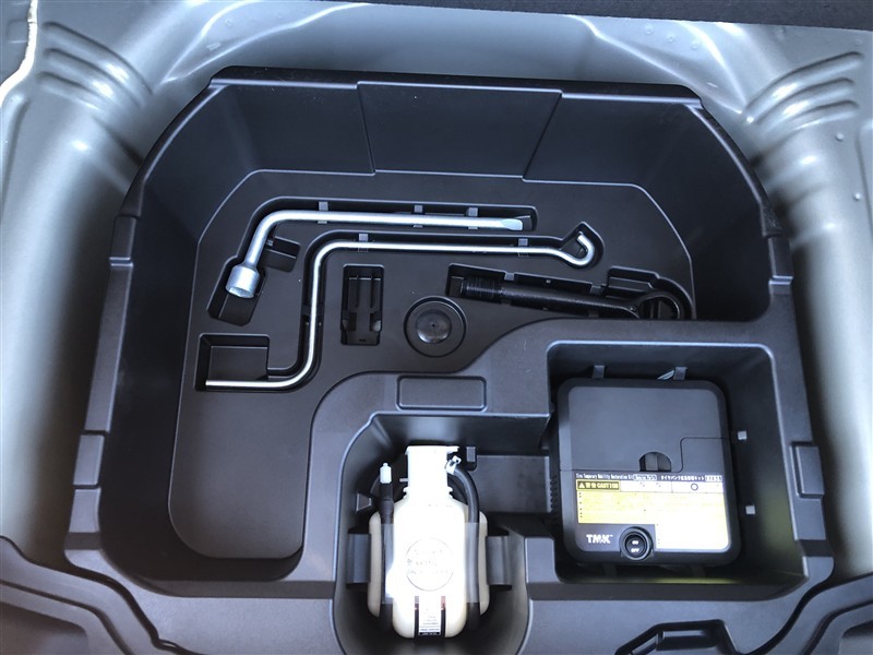 もしパンクをしてしまったら、この溶剤をエア注入口より入れて応急処置をして下さい。重たいスペアタイヤを積んでいるより燃費の向上になるので、パンク修理キット搭載の車が増えているんです。