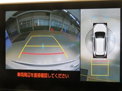 車の全周囲の画像が表示されます。運転席から見づらい個所なども、上空から見たような映像で確認できます。映像のきりかえも出来、後方確認だけでなく大変便利な機能です。