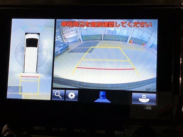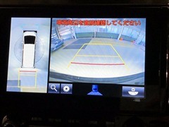車の全周囲の画像が表示されます。運転席から見づらい個所なども、上空から見たような映像で確認できます。映像のきりかえも出来、後方確認だけでなく大変便利な機能です。