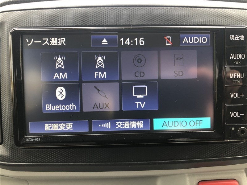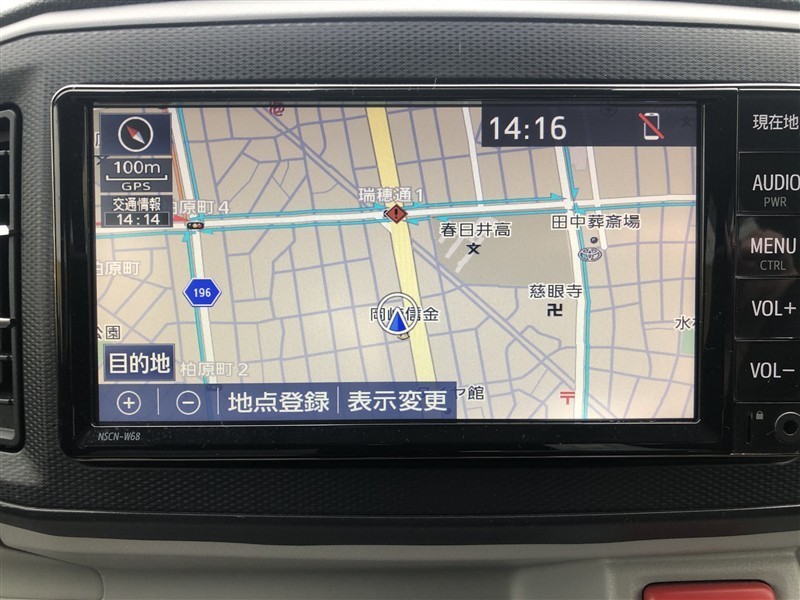 トヨタ純正メモリーナビ装着車。大画面で見やすく使いやすいナビゲーションです。トヨタ純正ならではの、シンプルで簡単操作です。