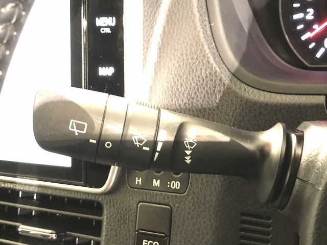 ワイパースイッチです。「INT」では間欠ワイパーの作動時間間隔を変更できます。リヤワイパーも操作できます。