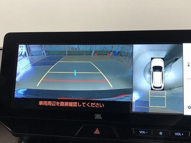 車の全周囲の画像が表示されます。運転席から見づらい個所なども、上空から見たような映像で確認できます。映像のきりかえも出来、後方確認だけでなく大変便利な機能です。