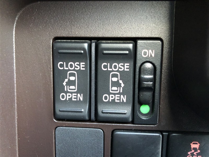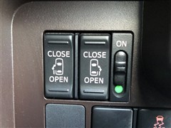 【両側電動スライドドア】です。小さいお子様やご年配のかたも、簡単にドアの開閉ができます。また、左右の行き来やスペースの少ないところでも安心して乗降ができるので便利です