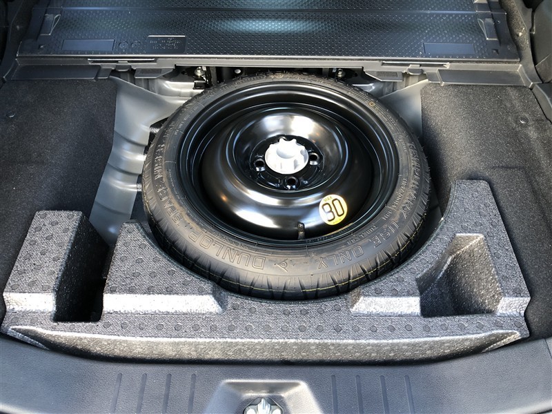スペアタイヤを装備しています。 いざと言う時には、使い慣れないパンク修理キットより、スペアタイヤが安心です。