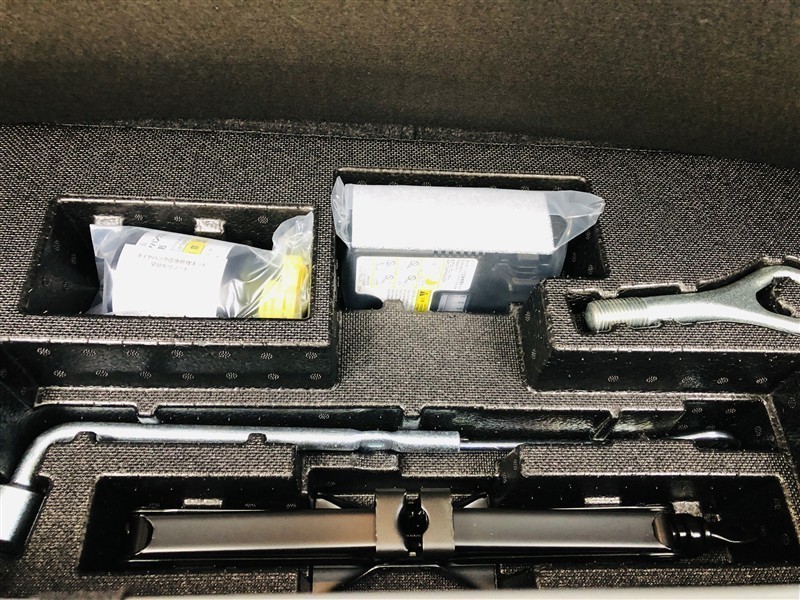 もしパンクをしてしまったら、この溶剤をエア注入口より入れて応急処置をしてください。重いスペアタイヤを積んで走るより燃費向上になるので、パンク修理キット搭載車が増えてます。