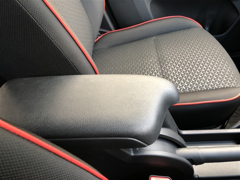 運転席と助手席の間には、ひじ掛けがついてます。収納ボックスも兼ねているので、小物も収納でき車内をスッキリと片付けられます。