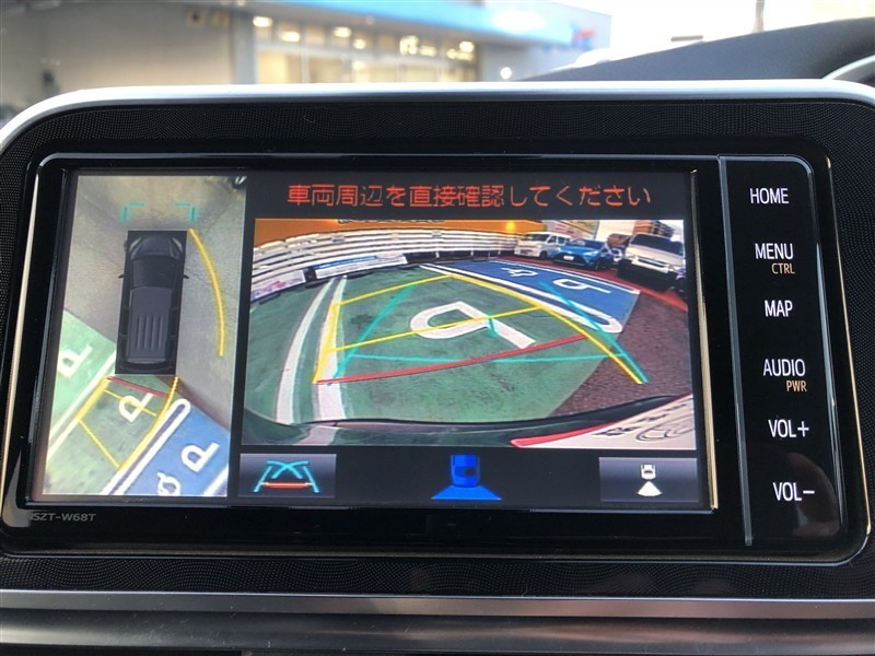 全周囲の画像が表示されます。 運転席から見づらい個所なども、上空から見たような映像で確認できます。  映像の切替もでき、後方確認だけでなく大変便利な機能です。