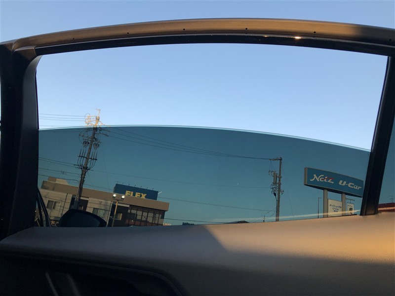 後部座席にはウィンドウフィルムが貼ってあります。外から見えにくくなっています。