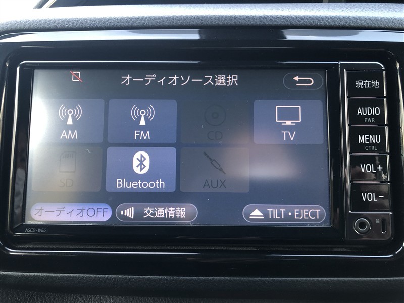 トヨタ純正メモリーナビ装着車。大画面で見やすく使いやすいナビゲーションです。トヨタ純正ならではの、シンプルで簡単操作です。