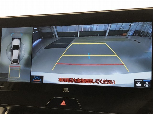 車の全周囲の画像が表示されます。運転席から見づらい個所なども、上空から見たような映像で確認できます。映像のきりかえも出来、後方確認だけでなく大変便利な機能です。