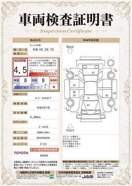 中古車選びの不安を安心に。【車両検査証明書】クルマの状態を徹底検査。トヨタ認定車両検査員の目で厳しくチェック。わずかなキズも車両検査証明書に記載してあります。