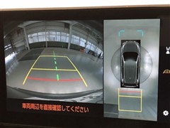 車の全周囲の画像が表示されます。運転席から見づらい個所なども、上空から見たような映像で確認できます。映像のきりかえも出来、後方確認だけでなく大変便利な機能です。
