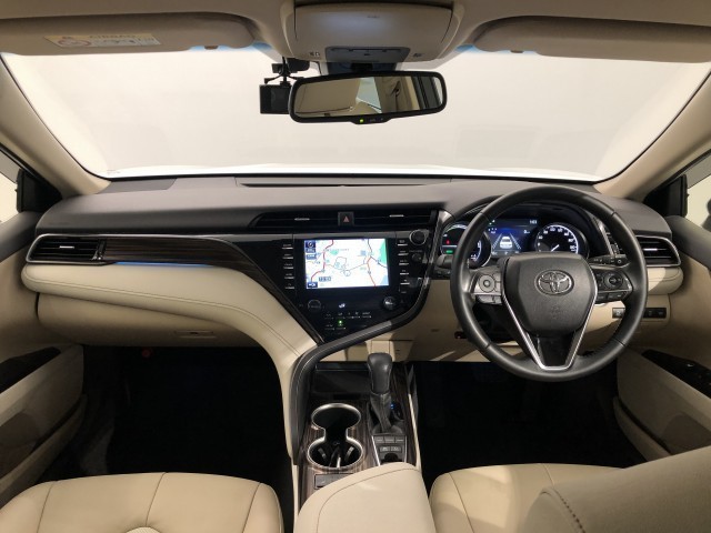 人気のカムリハイブリッド。落ち着いたアイボリーの内装が魅力です。