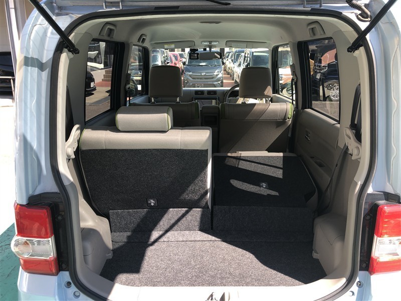 コンパクトカーながらラゲージスペースも広く、とっても便利です。6:4分割可倒式リヤシートを倒せばさらに広い空間を確保、長い・大きい荷物も収納OK!お買い物にレジャーに大活躍です♪