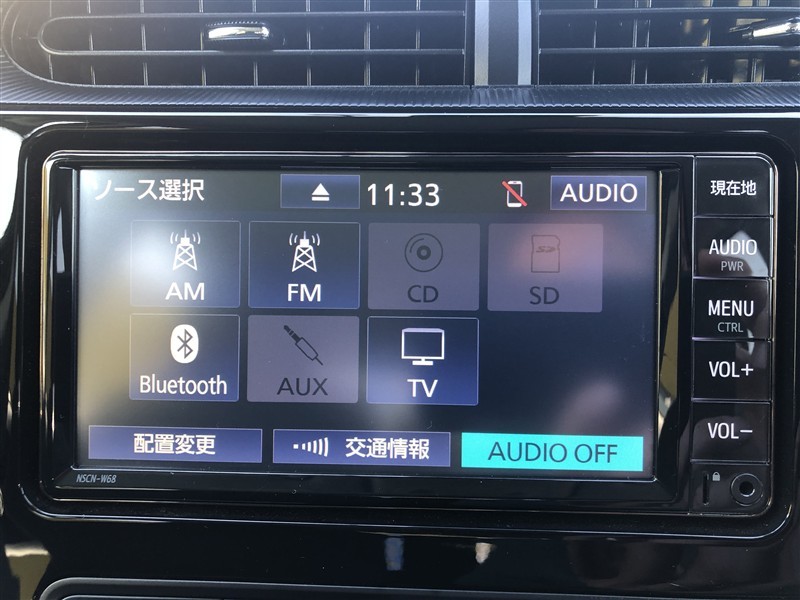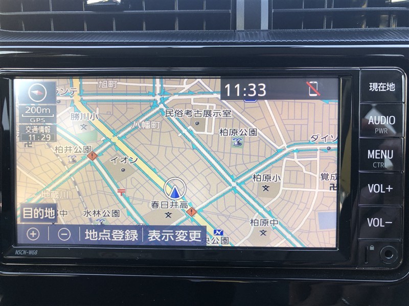 トヨタ純正メモリーナビ装着車。大画面で見やすく使いやすいナビゲーションです。トヨタ純正ならではの、シンプルで簡単操作です。