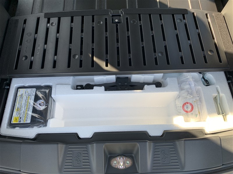 もしパンクをしてしまったら、この溶剤をエア注入口より入れて応急処置をしてください。重たいスペアタイヤを積んで走るより燃費の向上になるので、パンク修理キッド搭載の車が増えているんです。