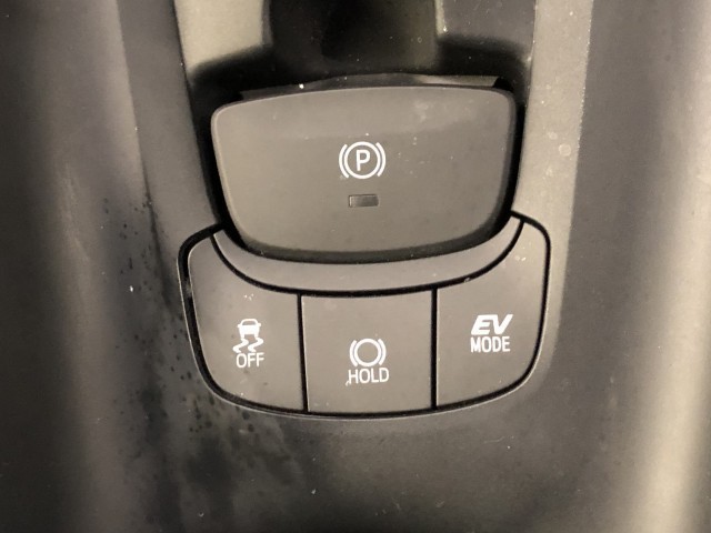 ハイブリッドならではの装備。EVスイッチを押すとモーターのみの走行が出来ますよ。 モーターで駆動するのでガソリンエンジンと比べると静かなので、早朝や深夜など大きな音を出さずに運転できます。