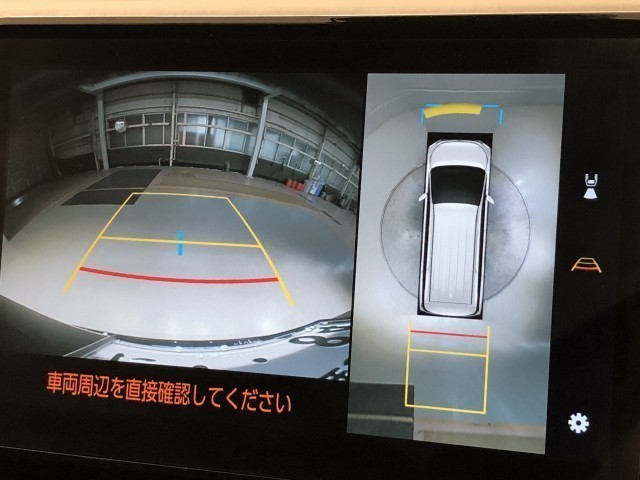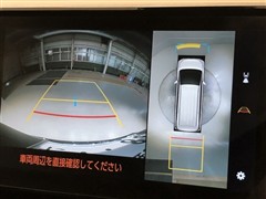 車の全周囲の画像が表示されます。運転席から見づらい個所なども、上空から見たような映像で確認できます。映像のきりかえも出来、後方確認だけでなく大変便利な機能です。