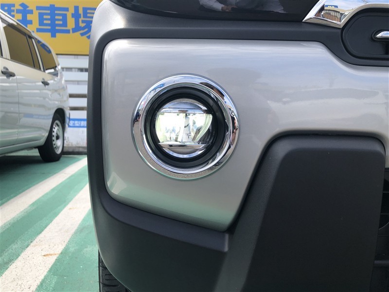 フォグランプは、夜間の雨や霧のような天候の時に、ヘッドライトだけでは見づらい時でも下向きに照らしてくれ視界を確保。非常に助かるライトです。
