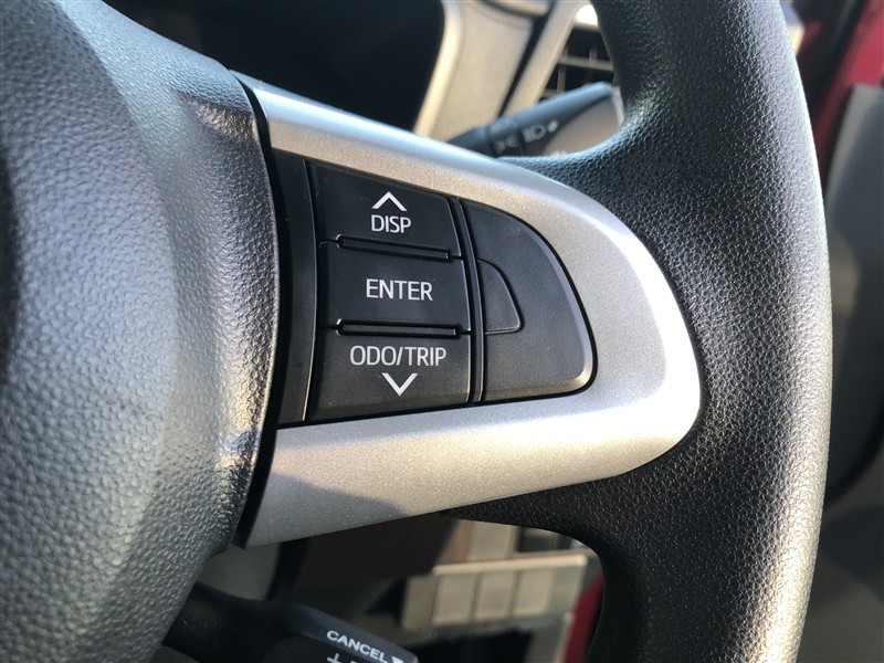 【ステアリングスイッチ】右です。ステアリングから手を離さず、運転に集中したまま手元でマルチインフォメーションディスプレイ内の表示切替などができます。