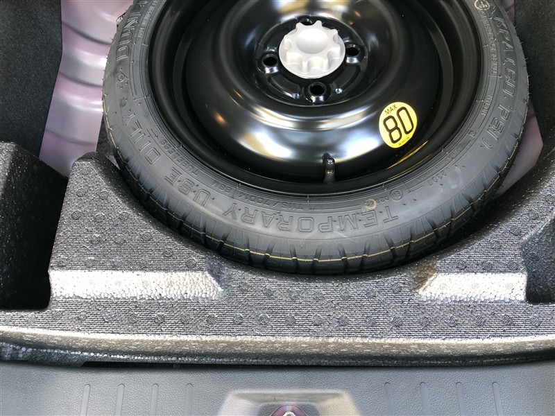 スペアタイヤを装備しています。 いざと言う時には、使い慣れないパンク修理キットより、スペアタイヤが安心です。