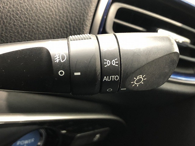 ライトスイッチです。「AUTO」にすると外の明るさに応じてスモールライト・ヘッドライトが自動でON・OFFします。夕暮れ時や屋内駐車場、トンネルなどに便利です。フォグランプもON・OFFできます。