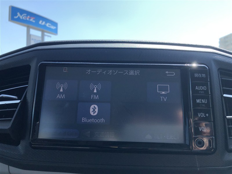 トヨタ純正メモリーナビ装着車。大画面で見やすく使いやすいナビゲーションです。トヨタ純正ならではの、シンプルで簡単操作です。
