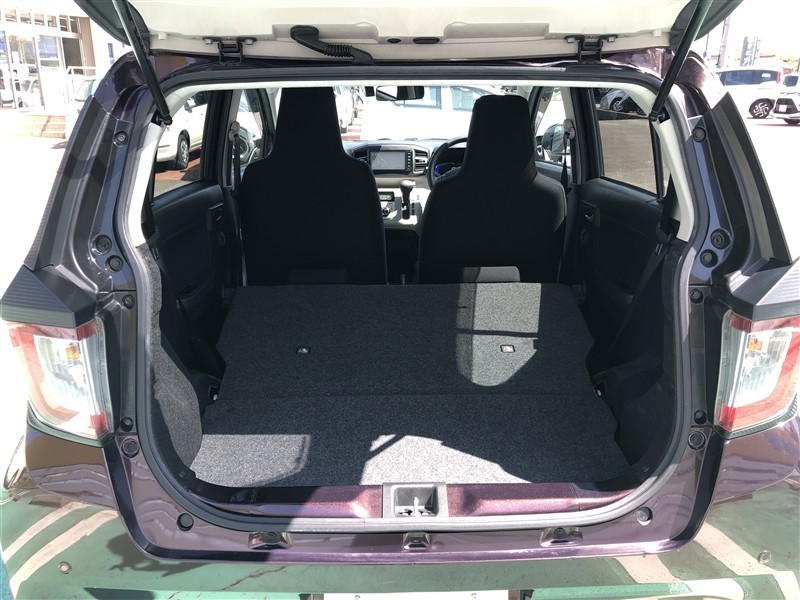 コンパクトカーながらラゲージスペースも広く、とっても便利です。6:4分割可倒式リヤシートを倒せばさらに広い空間を確保、長い・大きい荷物も収納OK!お買い物にレジャーに大活躍です♪